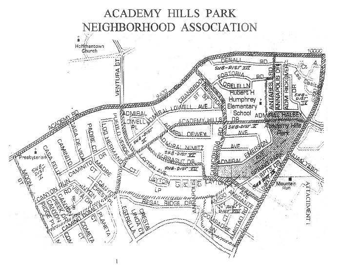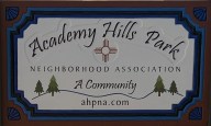 festivals, parades, cookouts, and various other community events. National Night Out is an excellent opportunity for you and your neighbors to socialize, renew acquaintances, welcome new neighbors, and join fellow citizens. AHPNA offers financial support up to $50 for individual subdivisions or blocks to fund their Night Out functions. National Night Out is always the first Tuesday night in August and for more information contact academyhillsparkna@gmail.com